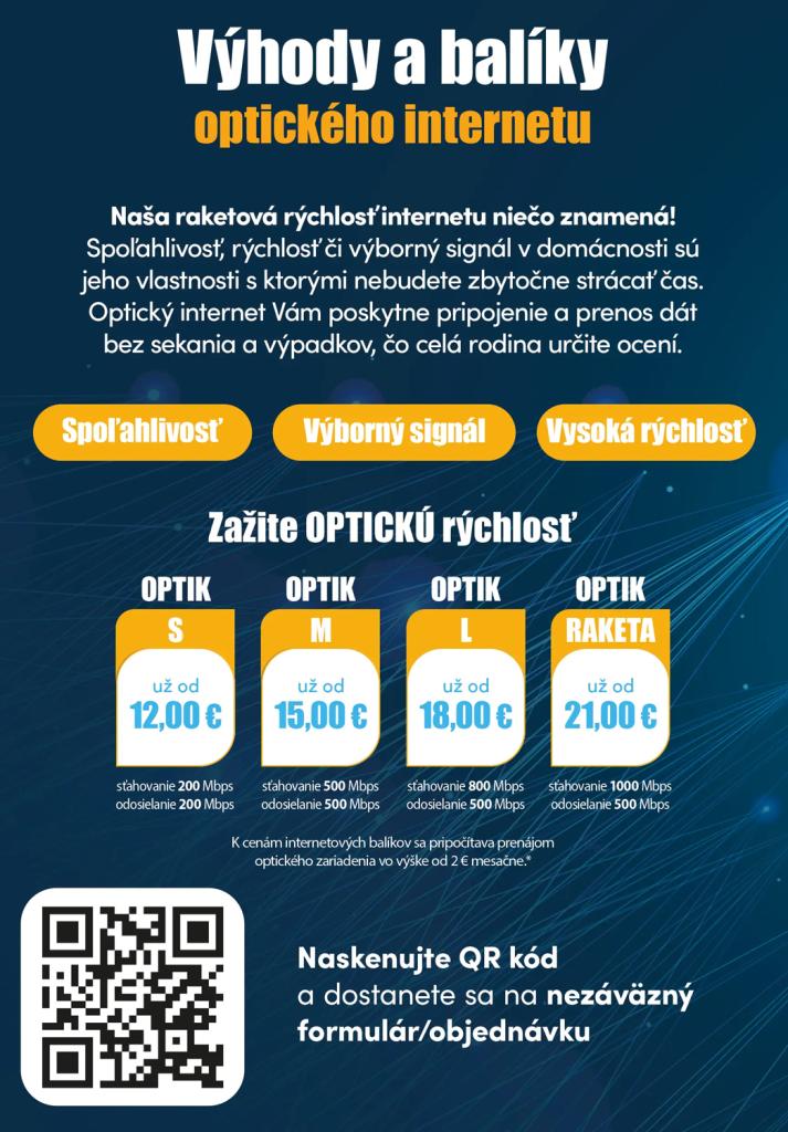 Pre našich občanov začali ponúkať šírenie optickej siete, čiže rýchleho, stabilného a spoľahlivého optického pripojenia tieto firmy: