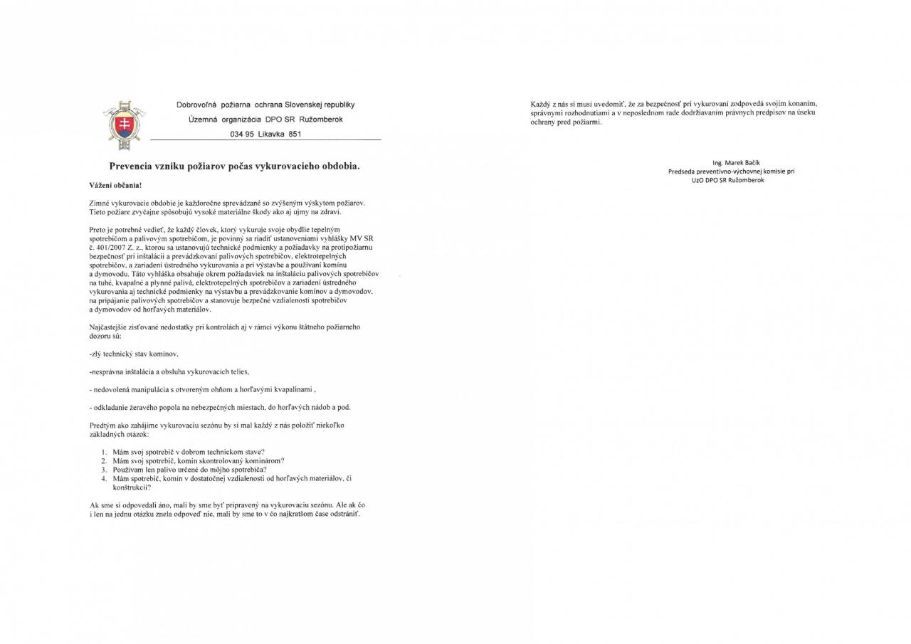 Každý z nás si musí uvedomiť, že za bezpečnosť pri vykurovaní zodpovedá svojím konaním,