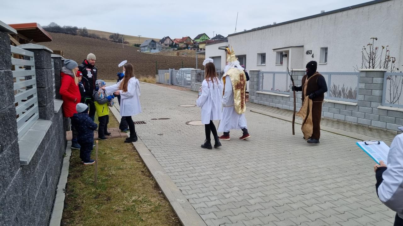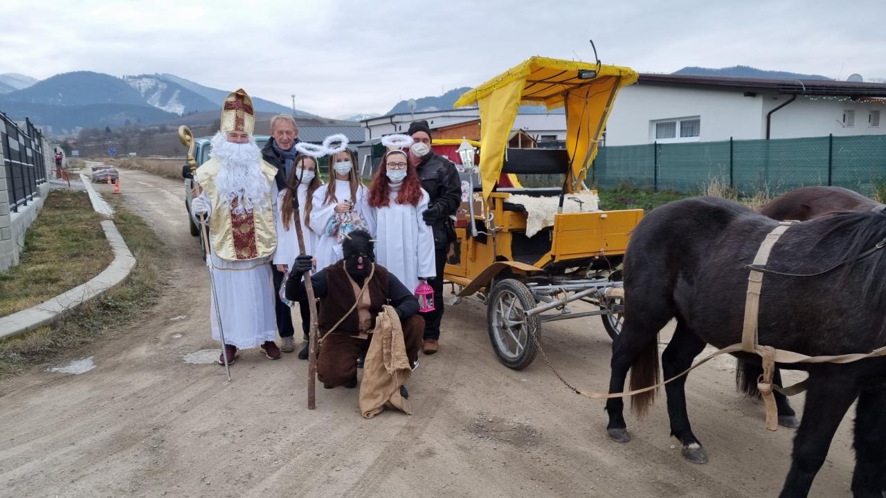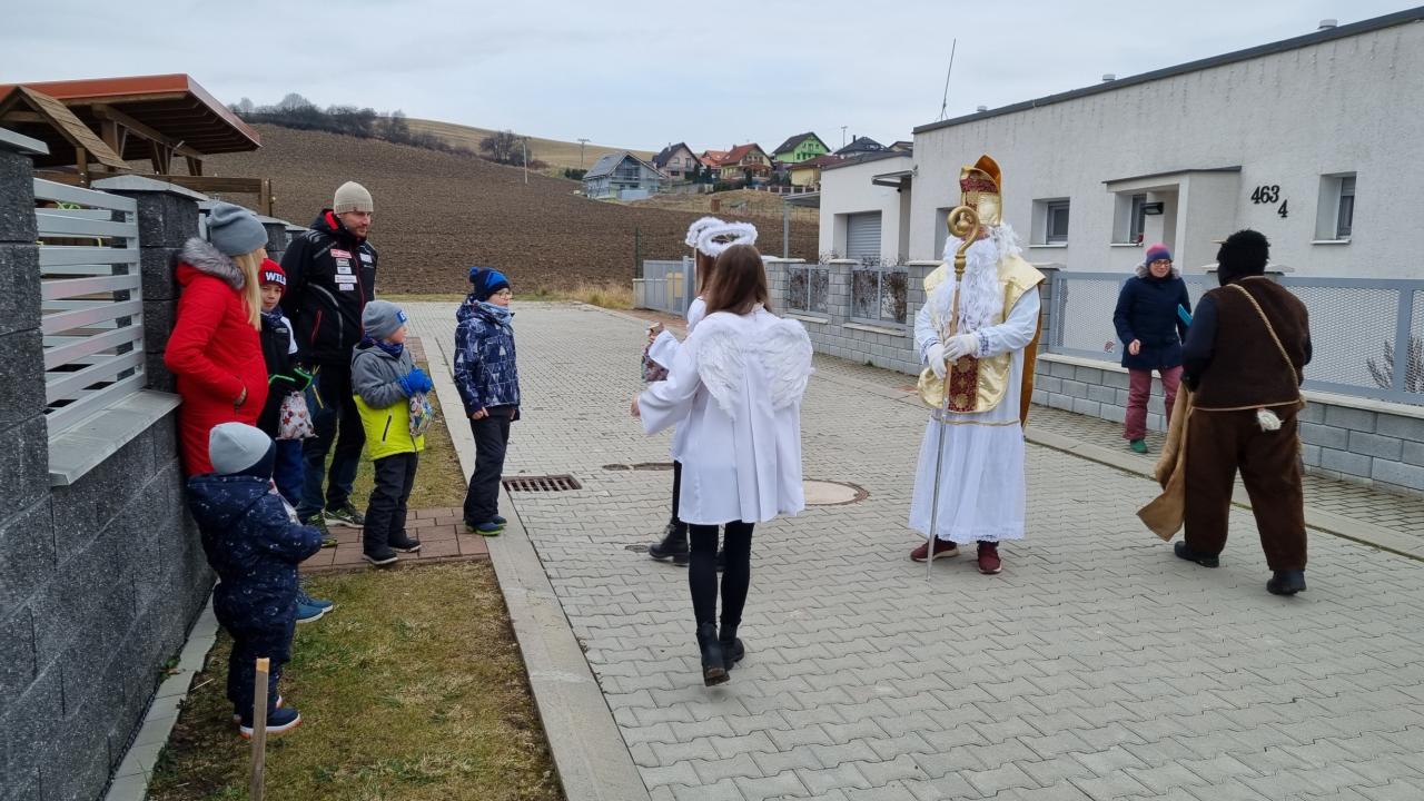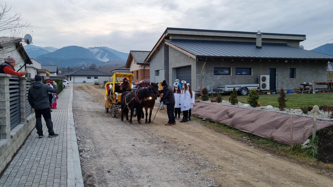 Dňa 05.12.2021 prišiel do našej obce Mikuláš spolu so svojími pomocníkmi čertíkom Bertíkom a anjelikmi Emkou, Luckou a Terezkou, aby potešili detičky a rozdali im Mikulášsku nádielku. Prišli na osvetlenom koči, z ktorého hrali vianočné pesničky. Prešli celou dedinou od domu k domu, aby rozžiarili detské očká :)