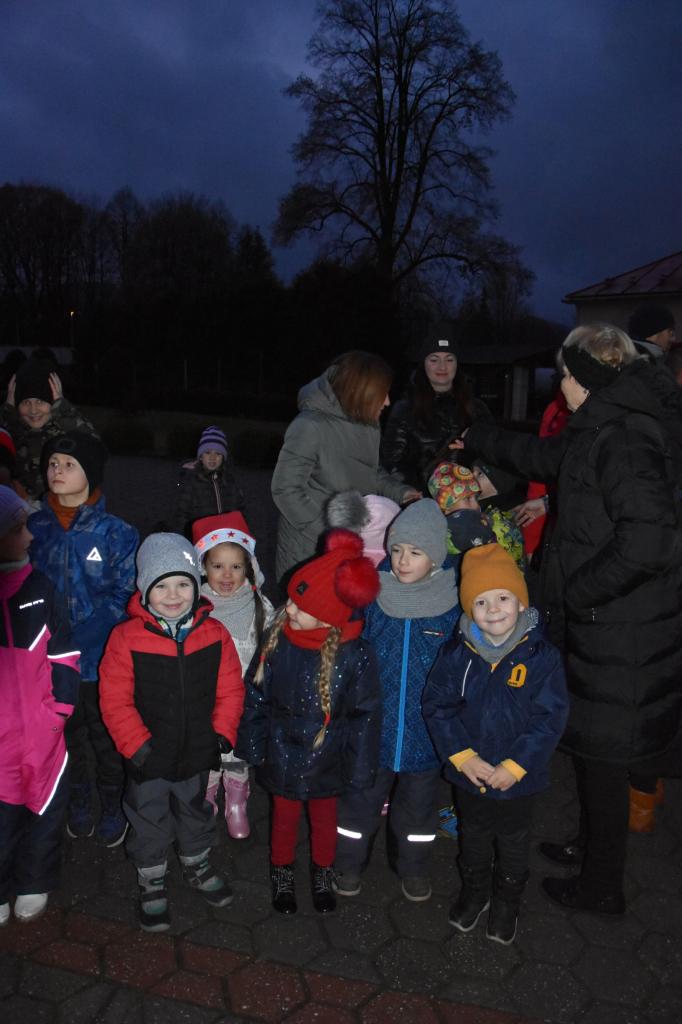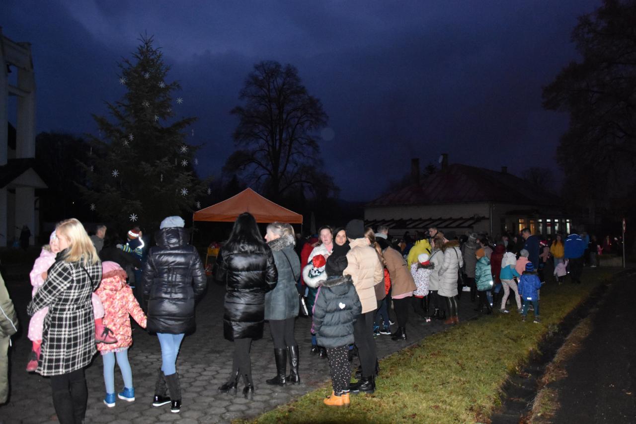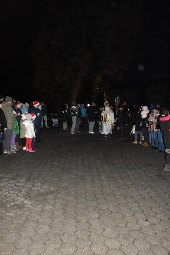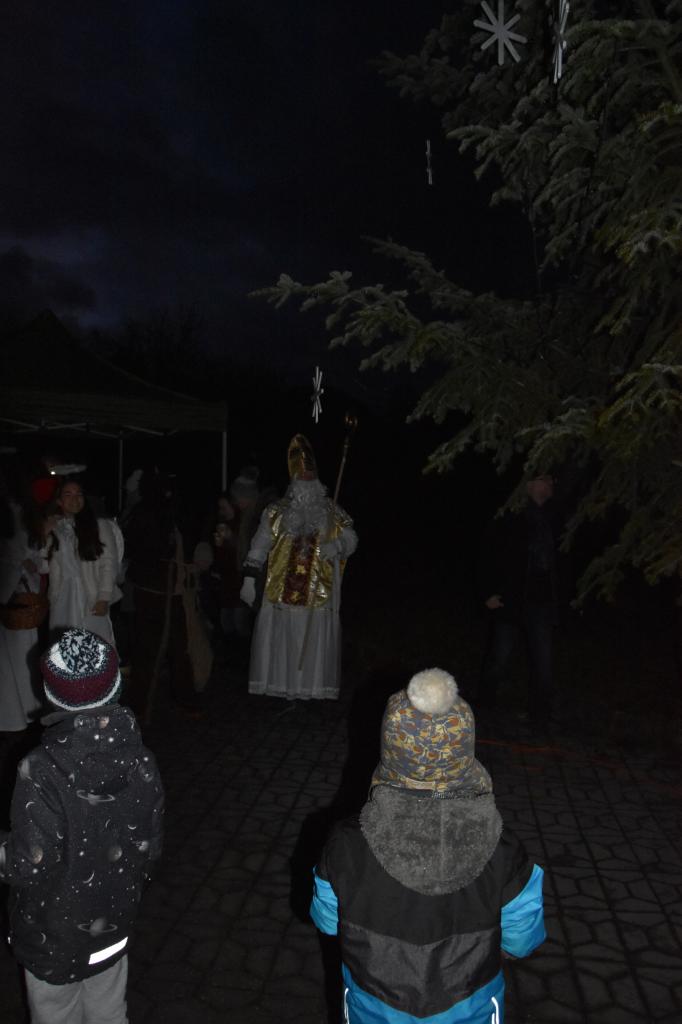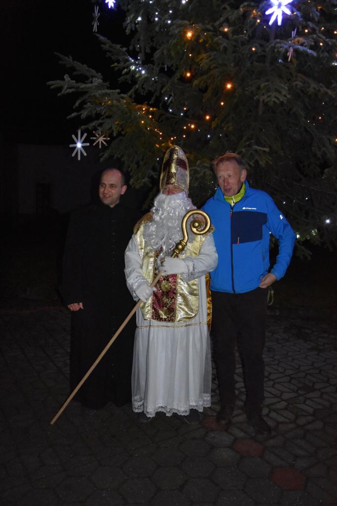 Mikuláš hneď pri príchode rozsvietil vianočný stromček, privítal všetky detičky, rodičov aj starých rodičov.